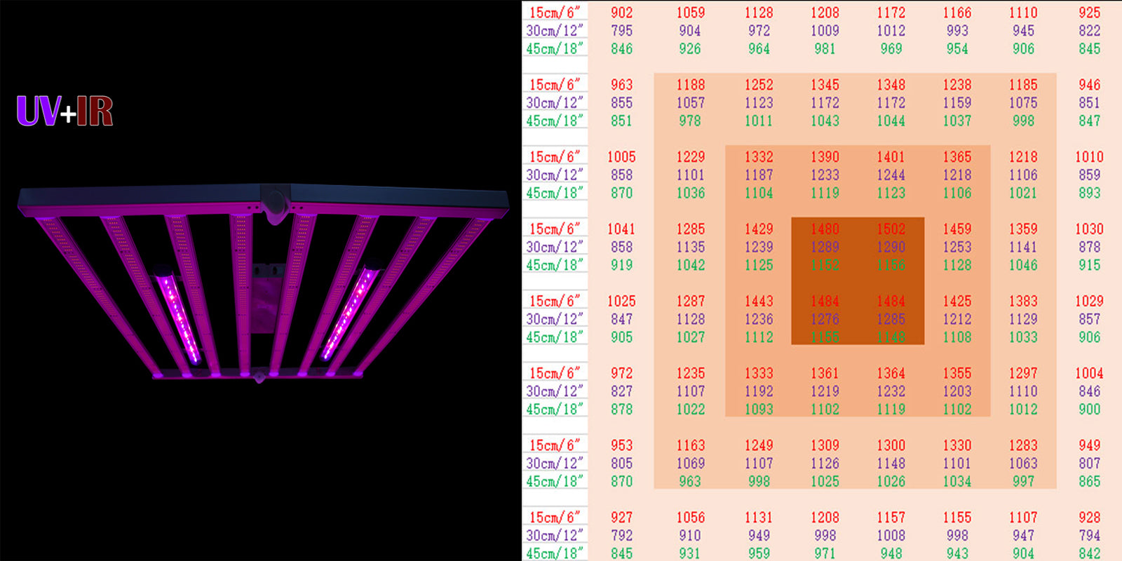 1. Samsung LM301H 3500K with OSRAM white+660nm led source, the lighting is most suitable to the indoor or greenhouse planting growth. With 2pcs UV& IR supplemental lighting bar.
