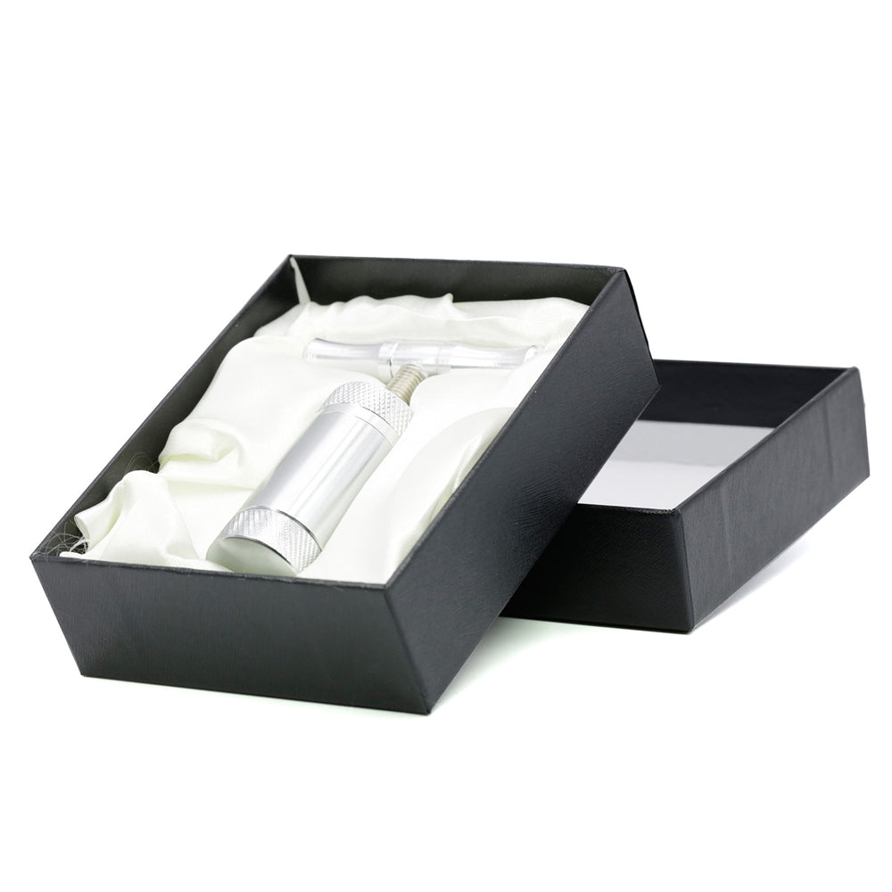 Resistance to Galling, heavy duty engineered brass alloy chrome plated cylinder。 It comes with Tincture cap. Please run it few times then clean it before first use. Use a thin coat of Olive oil on ends before each use to get the finest result Anodized silver color, it can be heated.