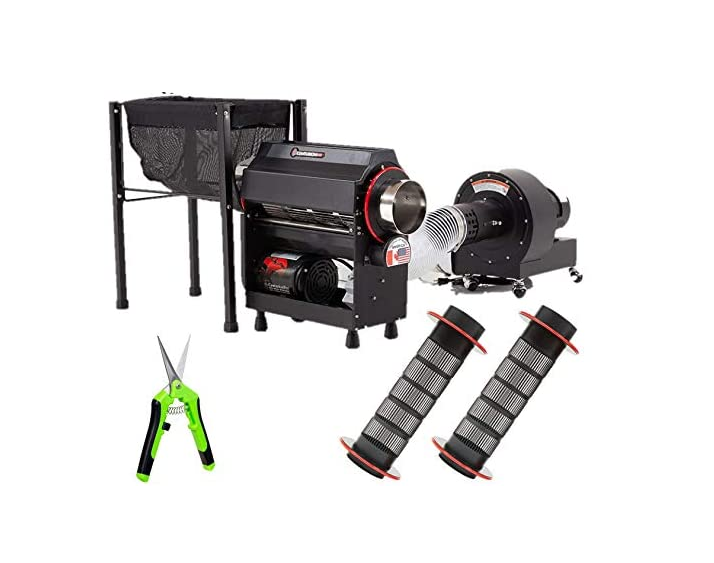 The most efficient, time-saving, industrial-grade automatic flower bud and leaf trimmer, with stainless steel cylinders, scissors, and large mesh bags, suitable for trimming flowers of various sizes.