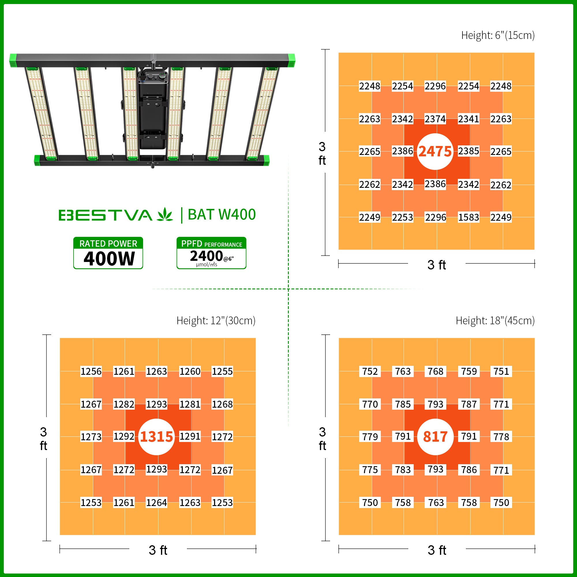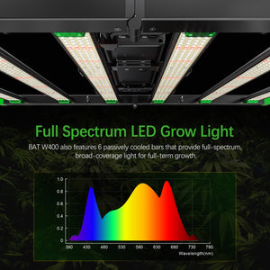 The BAT W400 LED is the solution for indoor growing environments where ceiling height and distance from the canopy are paramount. the BAT W400 is a great fit for use in vertical racks, low rooms, over benches, or even in tents.