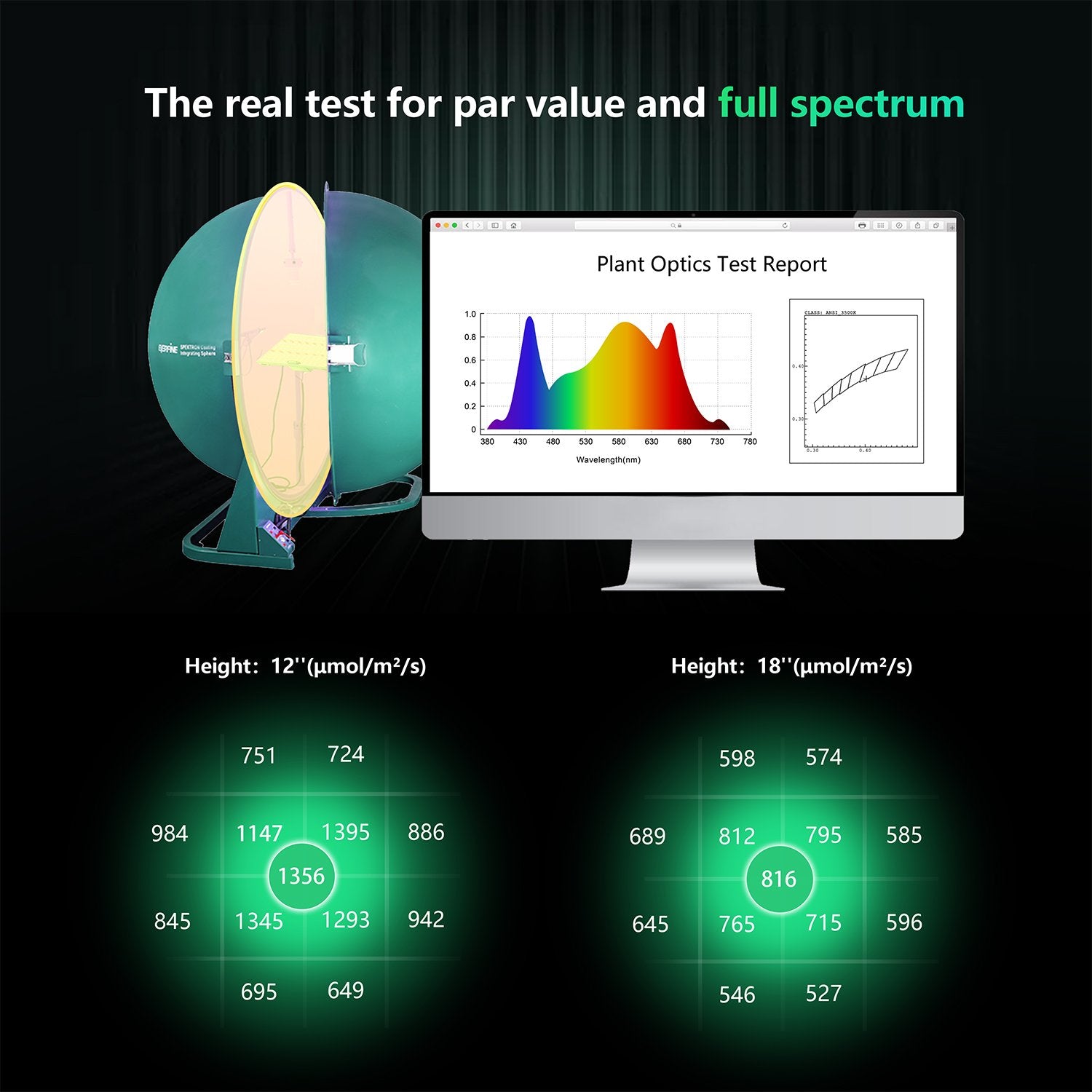 | PPFD at 24" height | 532 μmol/m2·s | 625 μmol/m2·s | 756 μmol/m2·s |