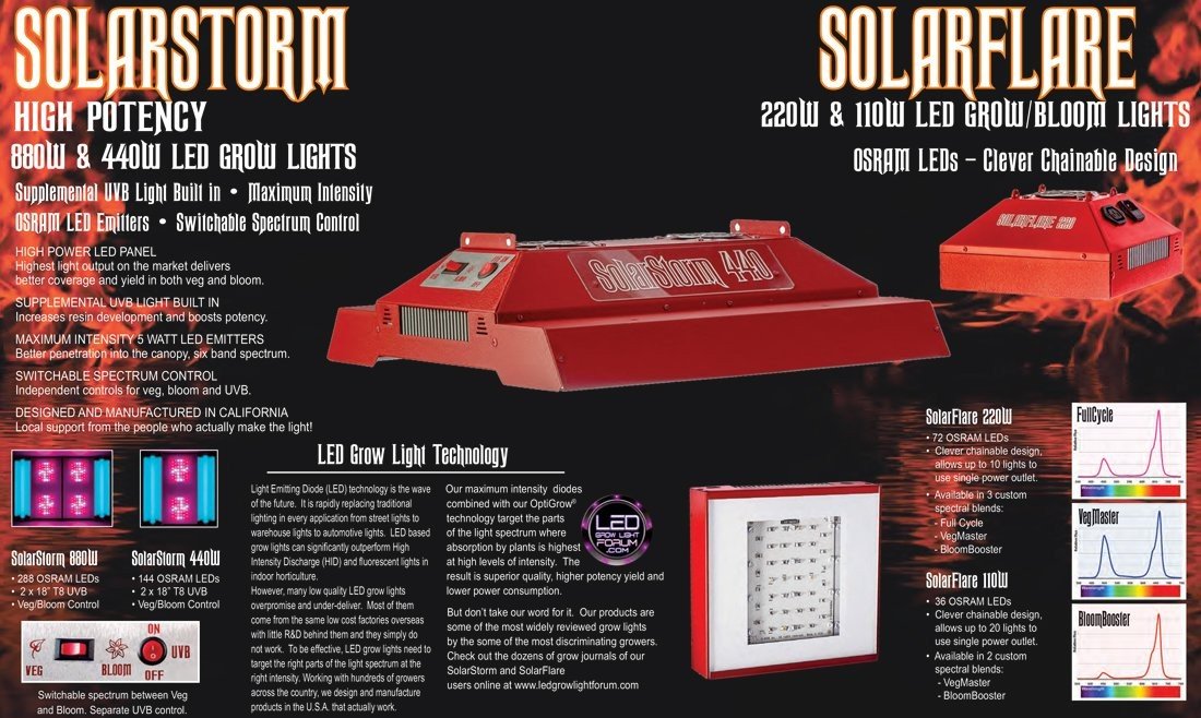 The California Light Works SolarFlare 220w Full Cycle LED Grow Light is a fantastic all round grow light operation, offering a range of color wavelengths to support plants throughout all stages of the growing cycle. With low operating costs, minimal heat projection and superior light inundation capabilities, the SolarFlare Full Cycle is ideal for home growers wanting an LED grow light that delivers professional results.