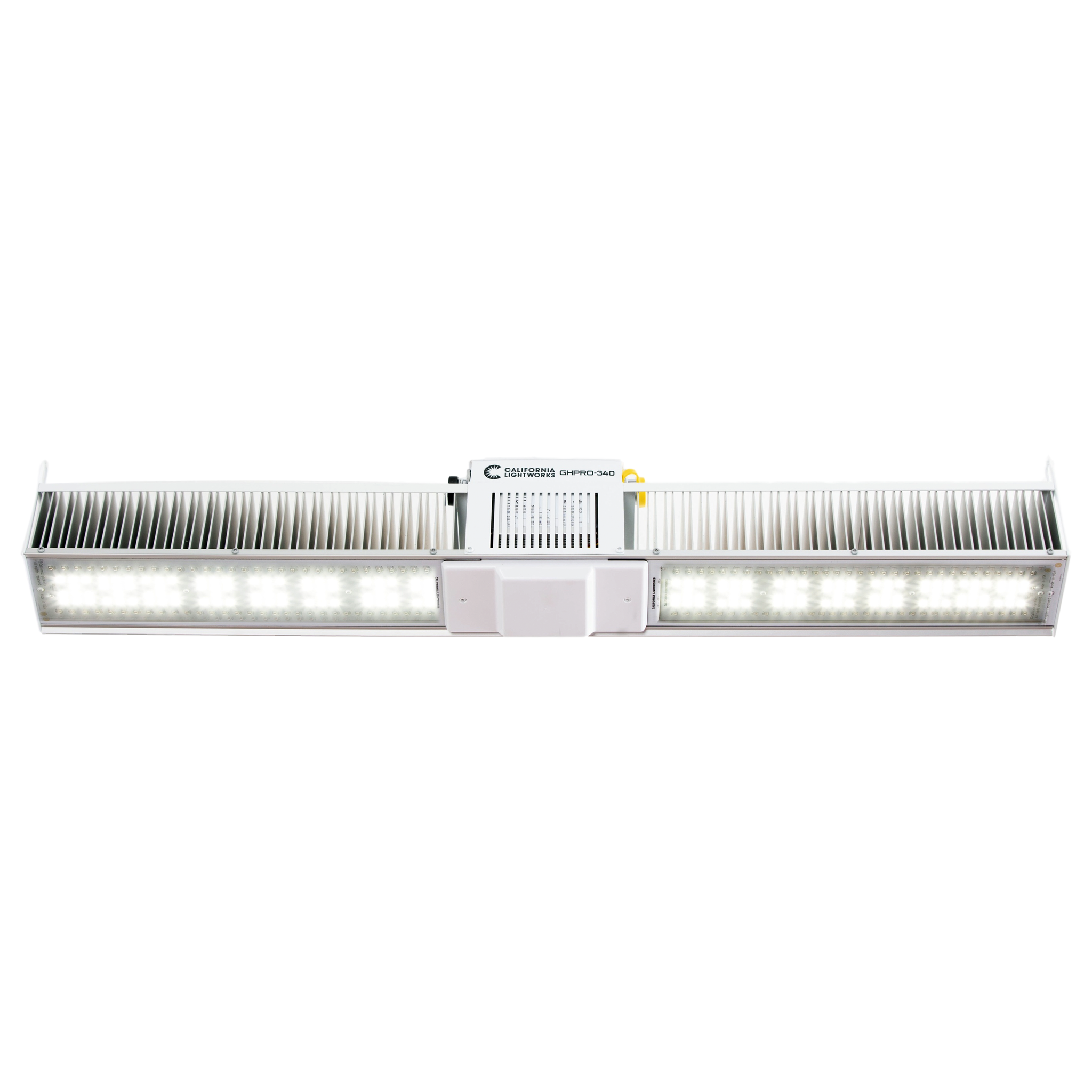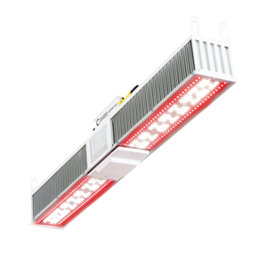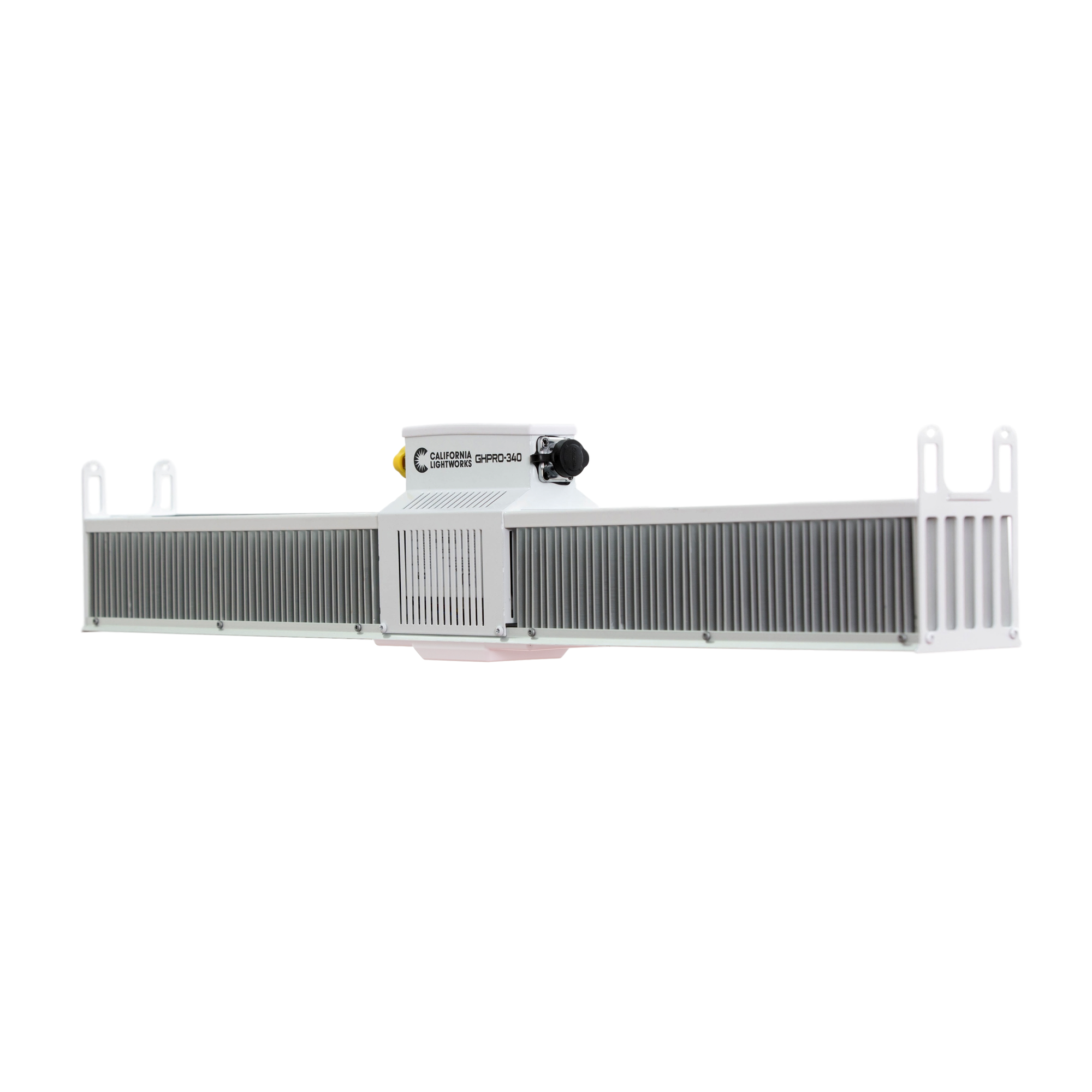 The New GH 340 is specifically designed for supplemental lighting in greenhouses. It features a very small shadow effect yet covers a large area. The GH 340 is chainable and as many as 10 lights can be run from a single power drop to save on installation costs. It also features wireless two-channel spectrum control and integrates with a wireless photo sensor for automated dimming depending on the amount of sunlight available. The GH 340 uses passive cooling with no fans and has an IP rating of 65. Draws 340 watts max with up to 3.0 μmol / joule efficiency.