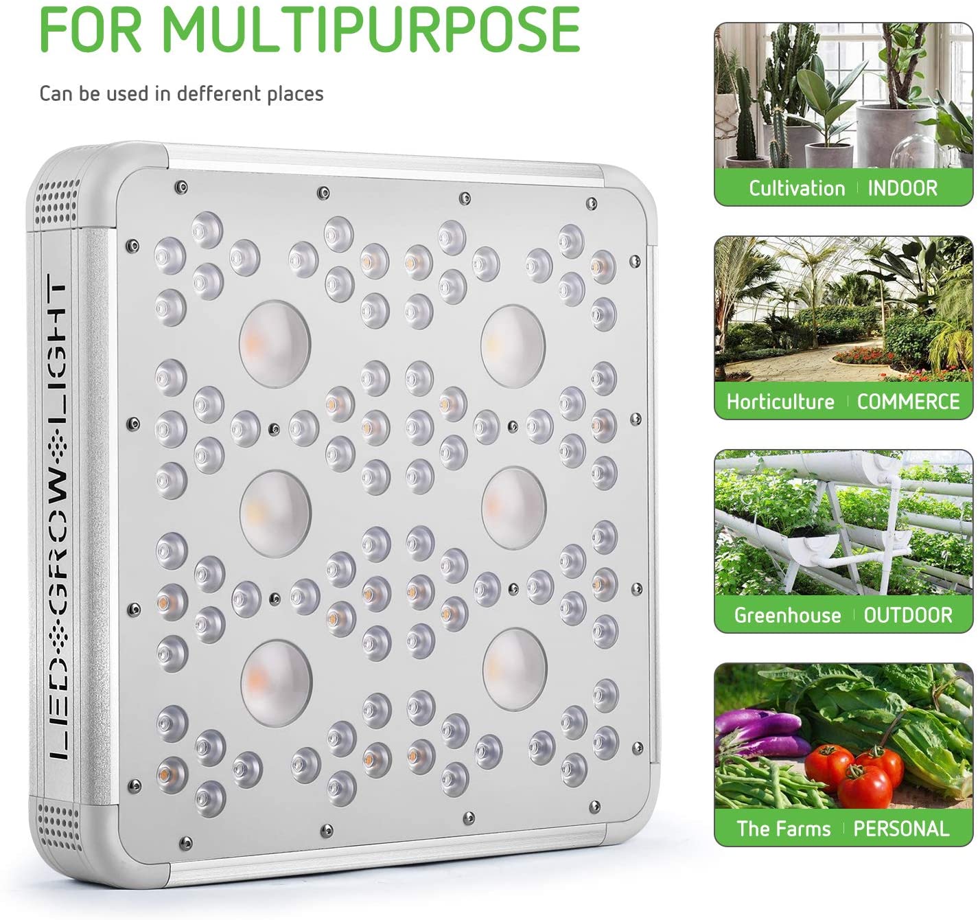 POWERFUL COOLING SYSTEM: Built-in 2 large heat sinks guarentee high efficient heat dissipation and lasting working; The cooling fans are so quiet that you can hardly hear any sound through a closed grow tent