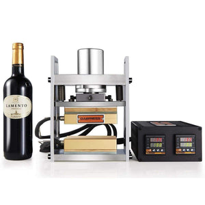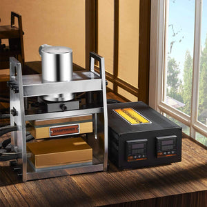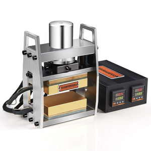 10 Ton Mini Rosin Press - The frame made of stainless steel, including 10-ton hydraulic cylinder, dual 3x5" heated platens and PID temp controller box.