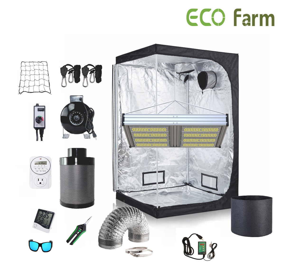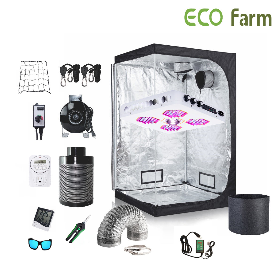 - Eco Farm LED grow light designs with high-density aluminum shell, ultra-thin and convenient. NOISE FREE-Fanless design will make your growing life easy and quiet. Perfect for indoor plants growing.