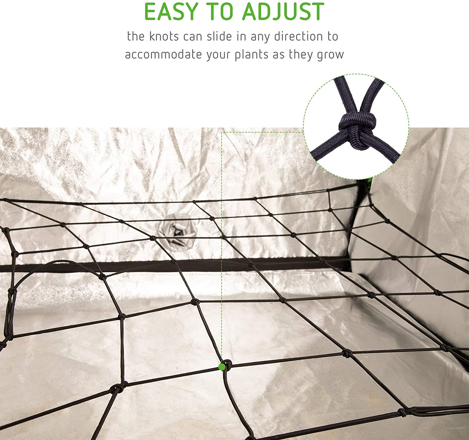• Each knot can slide in any direction to accommodate your plants as they grow.