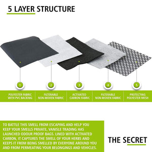 This smell proof bag from ECO Farm features triple layer carbon protection with odor capturing activated charcoal. With a sturdy zipper and a velcro seal, this scent proof bag provides the highest level of protection against pungent smells escaping.