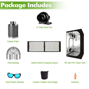 Grow Light: 1x240W LM301H LED Quantum Board, 1xHanging Kit, 1xPower Cord