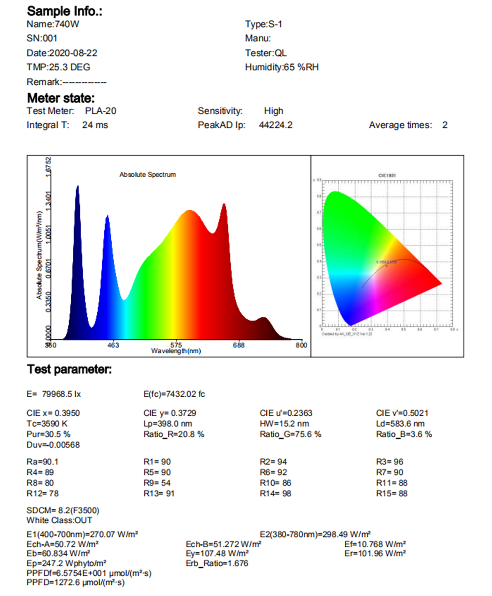 2592pcs (SAMSUNG chip 3500k +SMD 660nm) 648pcs( SMD 730nm IR+SMD chip 395nm UV) |