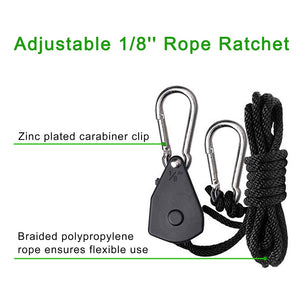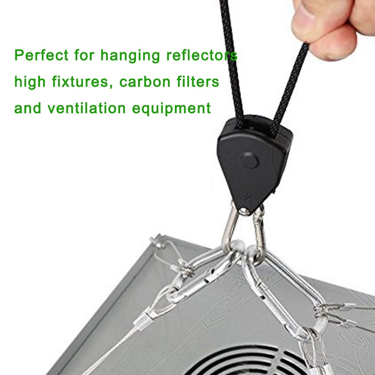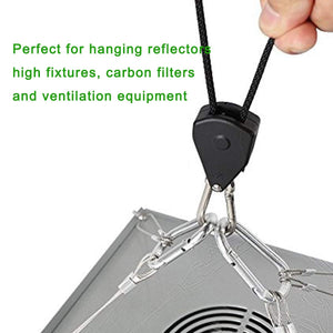 Rope Ratchet pulleys are adjustable hangers. Hang reflectors and carbon filters in your indoor crop quickly and easily.