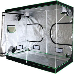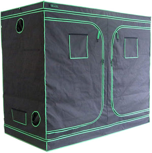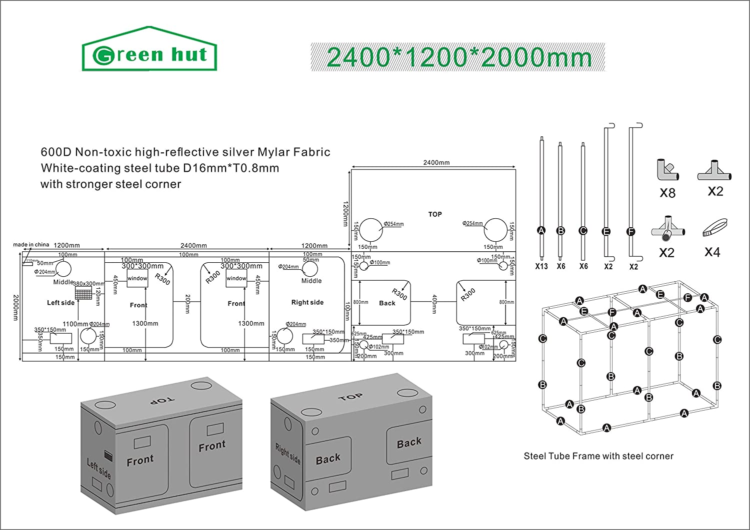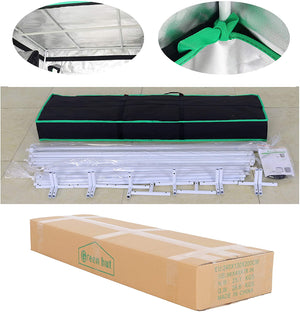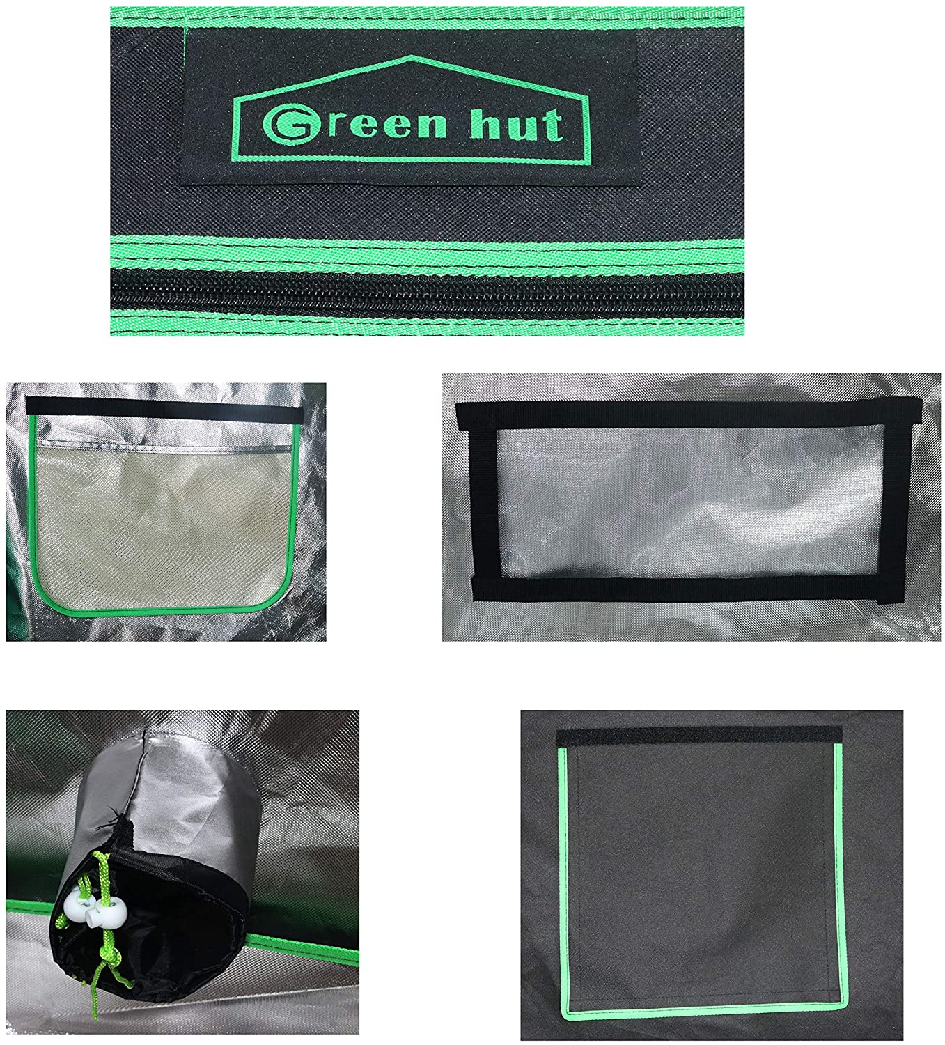 Package Includes: 1Green Hut 96”x 48”x 78” Grow Tent, 1 100% Water-Resistant Removable Mylar Floor Tray for easy cleaning, 2 Filter Straps and 1 user manual