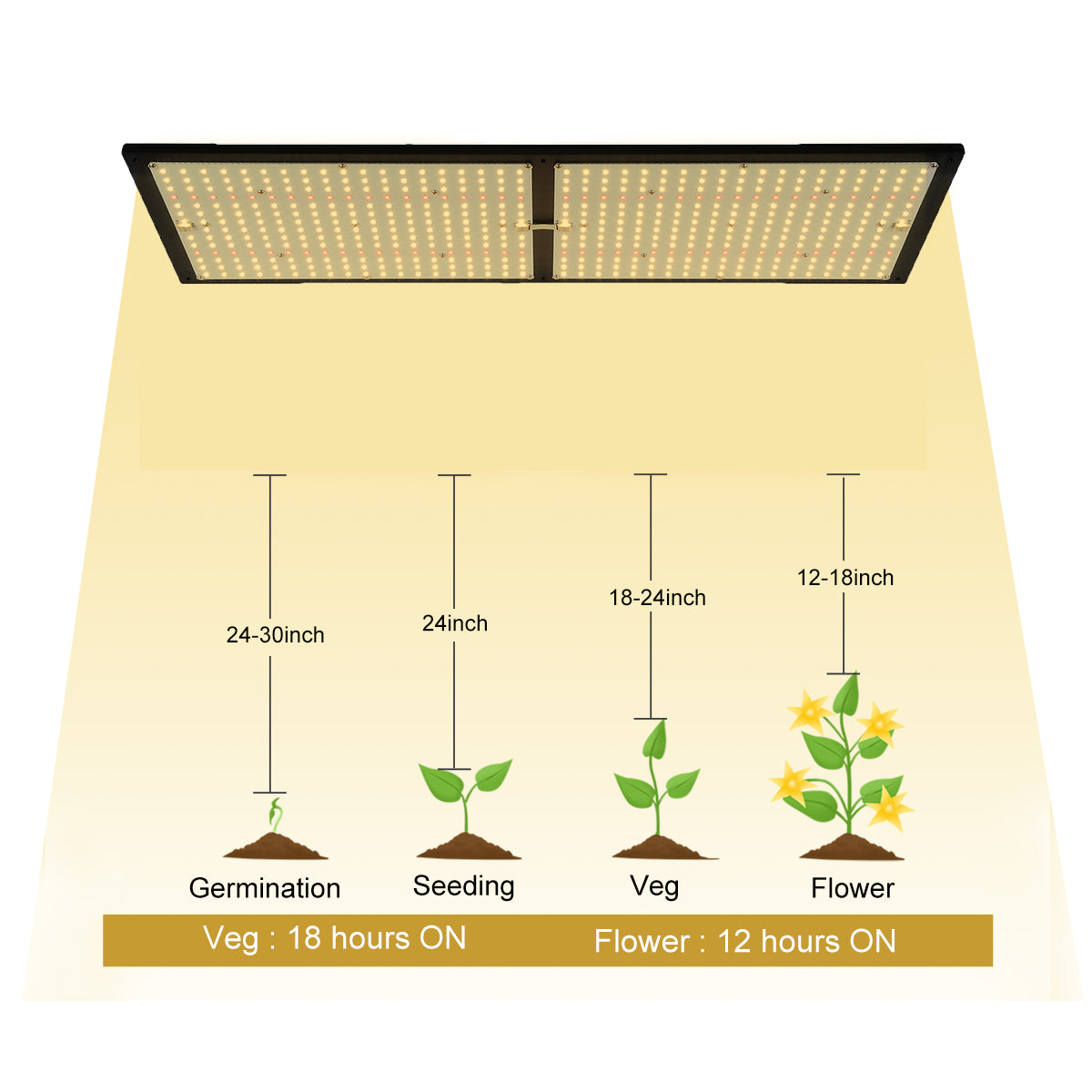 Eco Farm Commercial Indoor LED grow light uses our custom designed full-spectrum high efficiency white light quantum boards with Samsung LM301B/LM301H and Deep Red LED 660nm and Far Red 730nm and UV 395nm with 120 watts 240 watts 480 watts to choose.