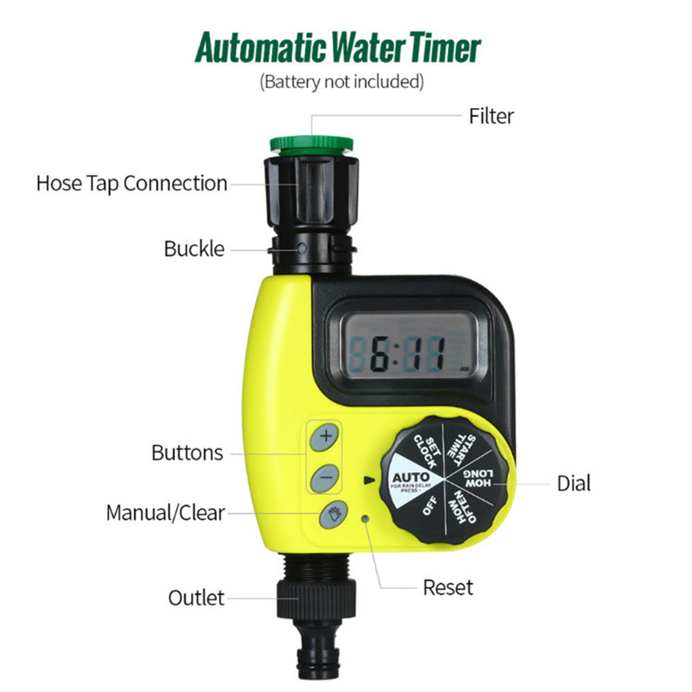 This one dial hose faucet timer allows complete control and functionality over your watering needs. Cycles easily from set clock, set watering time, how often, how long, then run program. A rain delay is built into the run program function. A manual button allows program interruption.