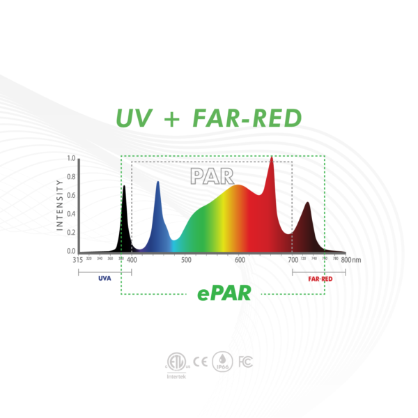 Enjoy all the benefits of full spectrum & UV+Far-Red lighting without sacrificing efficiency. The iLogic™8 LED family delivers deep, penetrating light intensity along with industry-leading uniformity over a square 4’ x 4’ footprint.