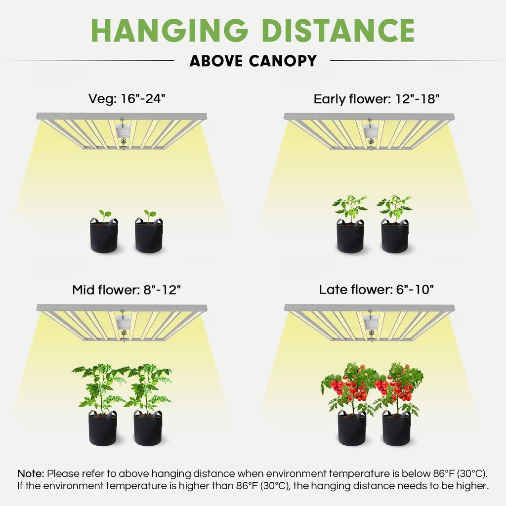 Large Yield & Increased Crop Quality- Expect up to a 50% higher yield and higher quality compared with the old blurple lights and HPS. Max yield Up to 2.5g/W with 30% higher Average PPFD.
