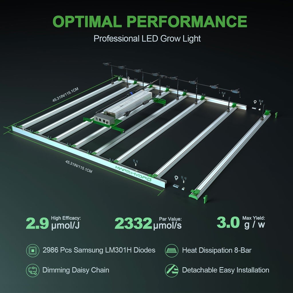 Commercial LED Grow Light: Wave-shaped heat sink increases the heat dissipation to achieve superior cooling. The detachable design allows for easy installation and storageIts w