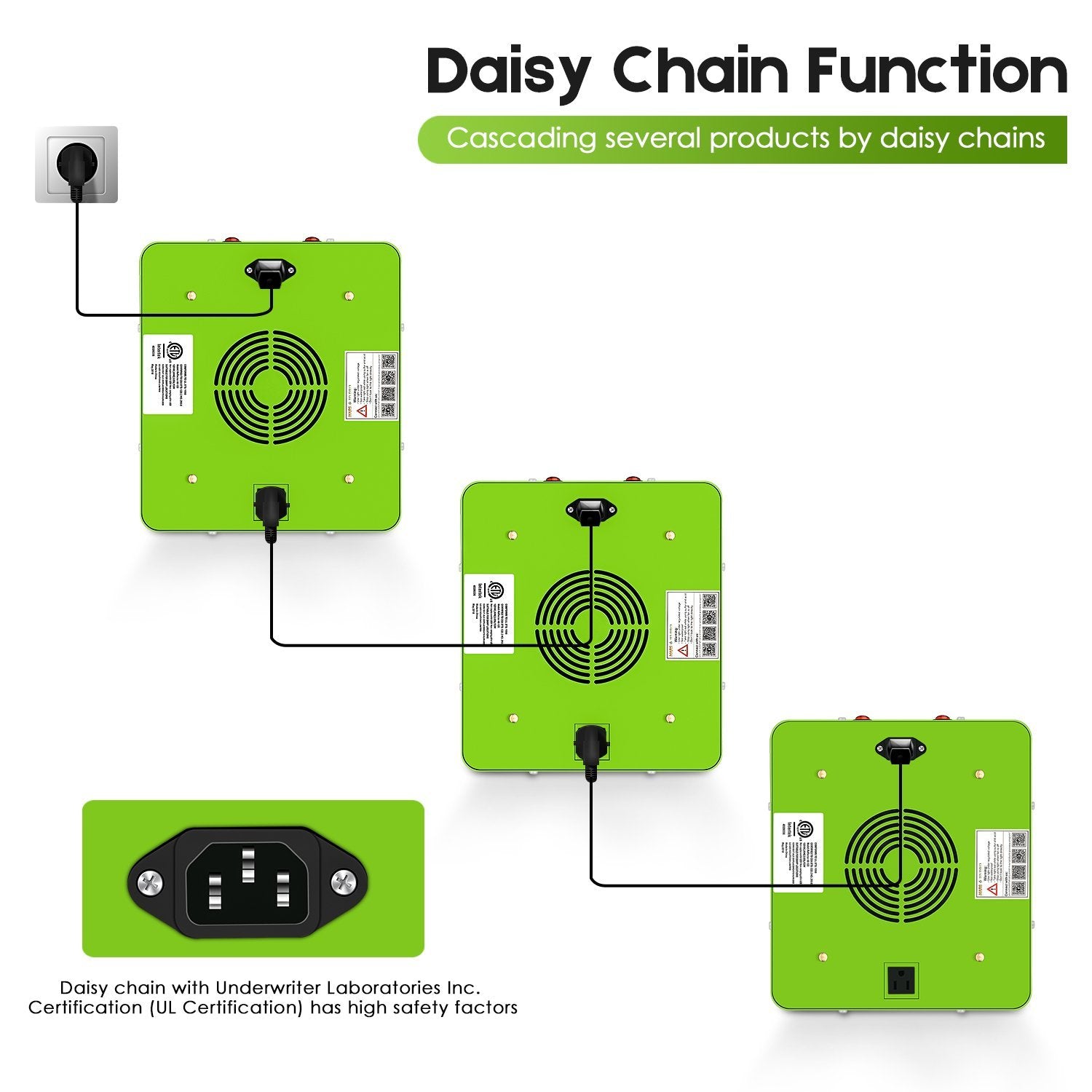 • SAFE-USE: Plug in and turn on. With the design of separate integrated circuit board and heat sink, damage of one component will not cause fatal problem to the whole set. The high speed heat dissipating fans work efficiently to cool down the Lights and make no noise.