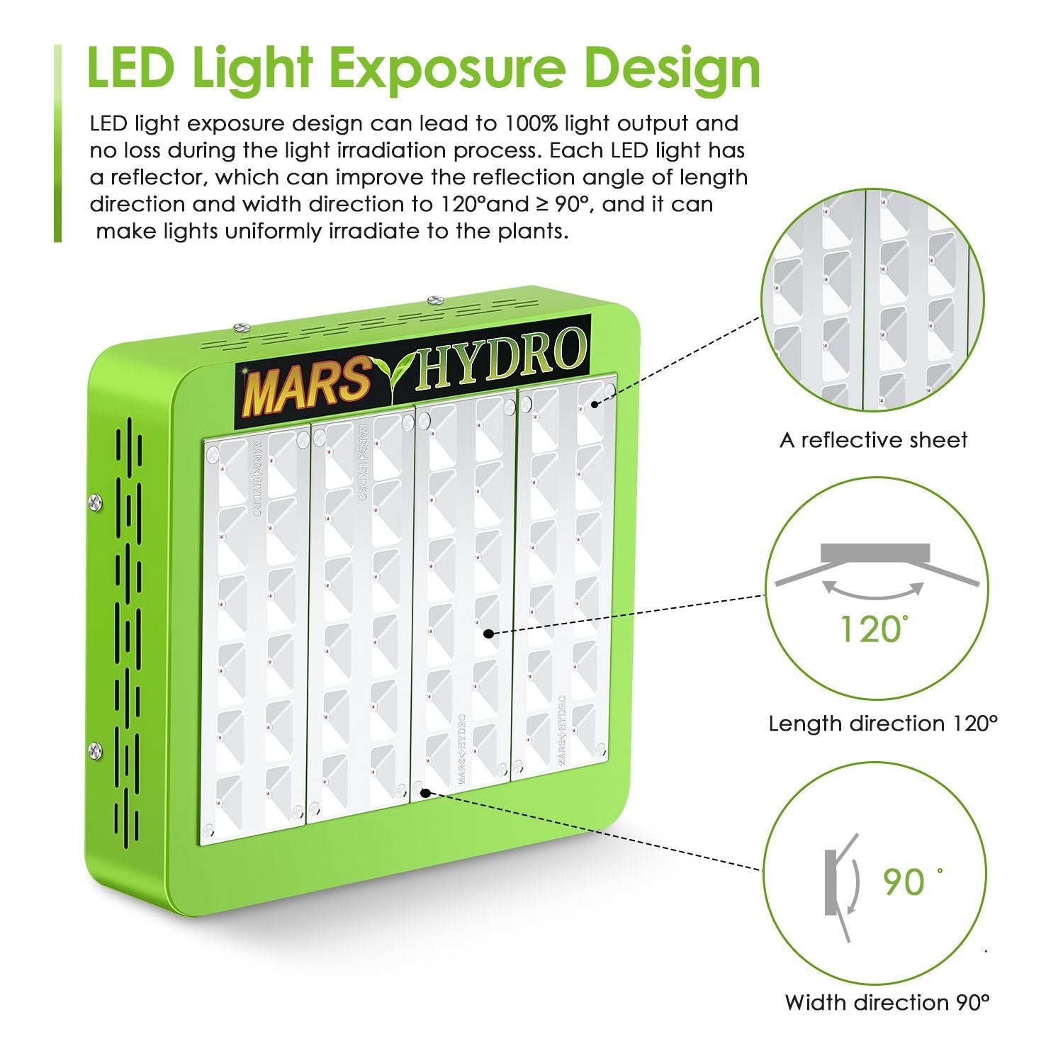 3. 720W MarsHydro lights to generate lighting beams that are same efficacious as traditional 960-1000W HPS/HID lights.