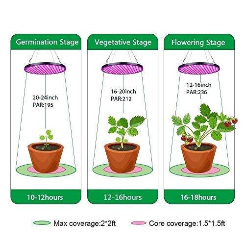 • Upgraded Light: Design with 123 pieces of red LEDs (630-660 nm) + 42 pieces of blue LEDs (430-460 nm) + 12 pieces (3000-6500k) LEDs, red and blue light makes the highest contribution to photosynthesis and influences plant growth directly.