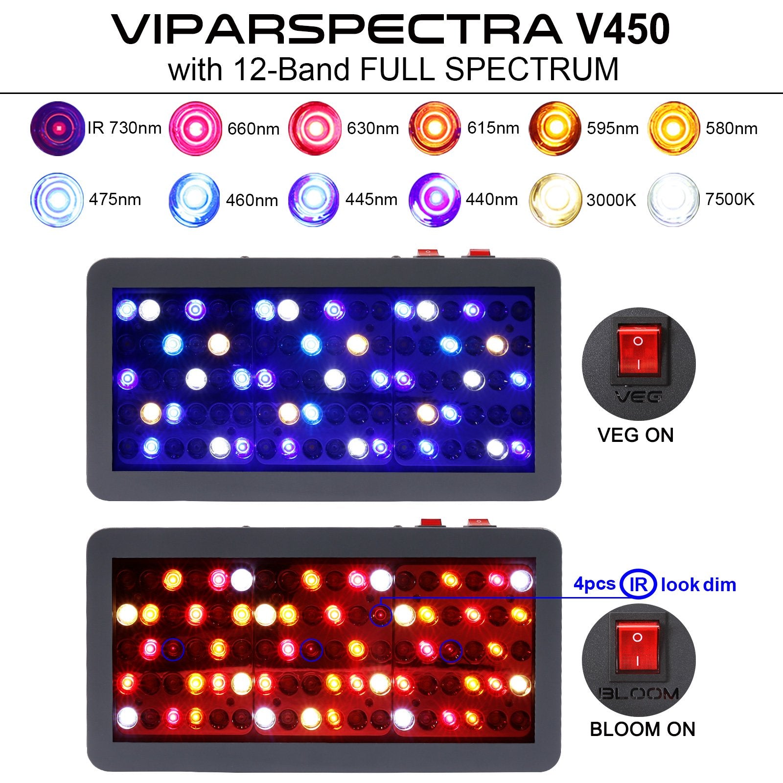 Welcome to the VIPARSPECTRA DS450 450W LED Grow Light, with full spectrum layout, dimmbale feature reflector design and upgraded aluminum cooling heat sinks, is ideal for all kinds of indoor plants veg and flower at all growth stages.