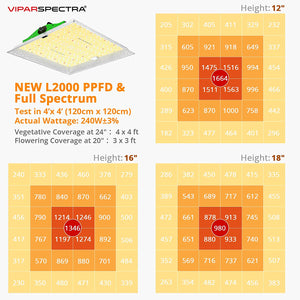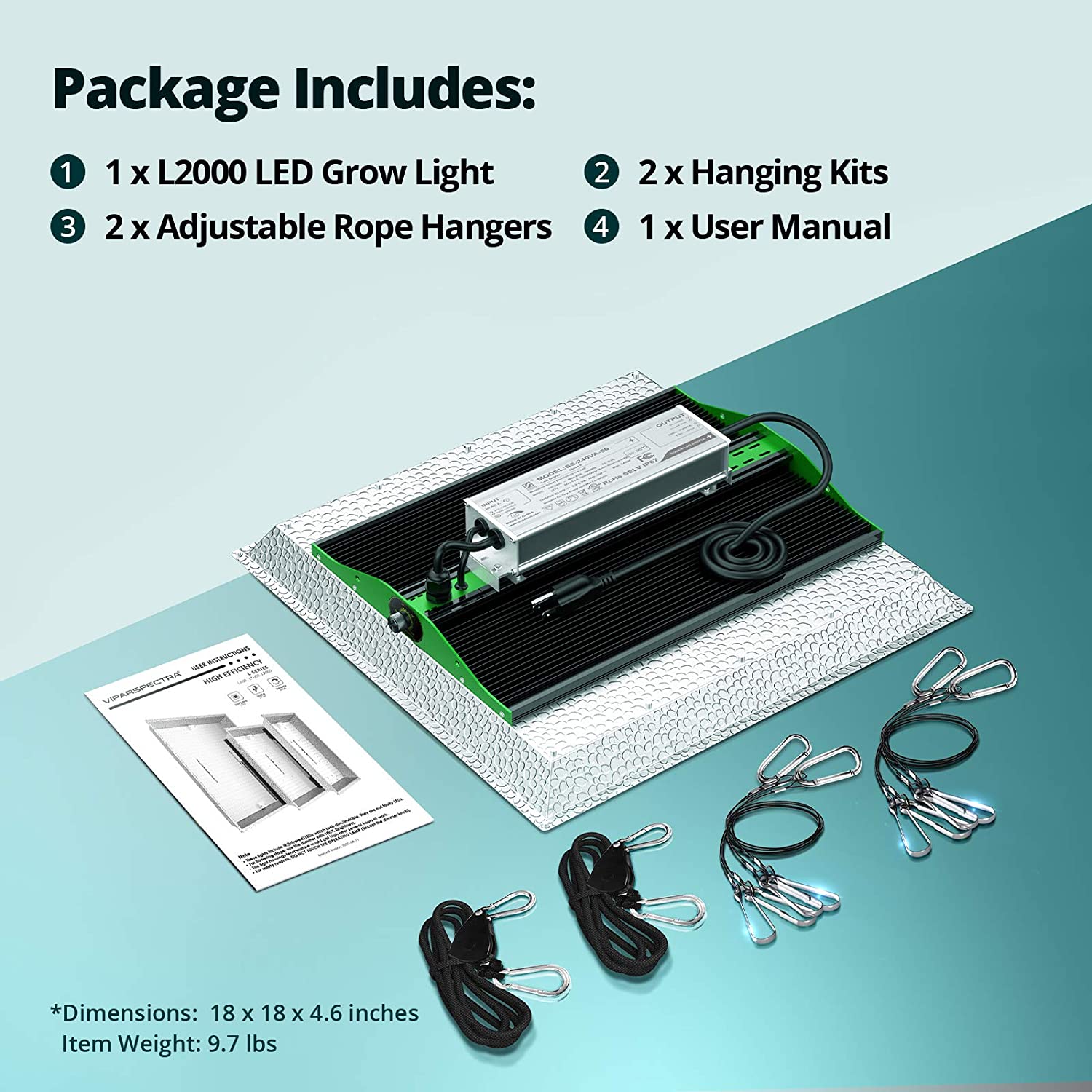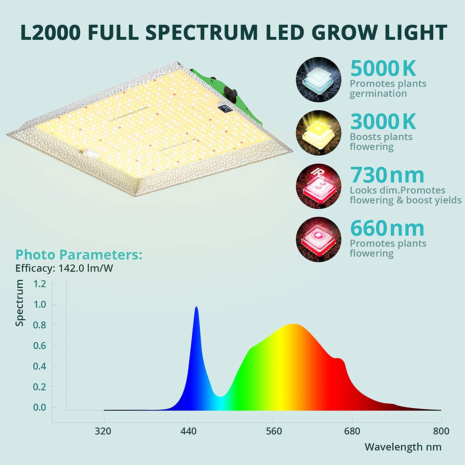 Welcome to the VIPARSPECTRA Newest L2000 LED Grow Light, is a high-performance, full-cycle solution for commercial horticulture cultivation, with the power to scale from vegetative growth to higher light intensities in bloom, with Samsung Diodes, optimal full spectrum layout, high PPFD, 2.9umol/J, dimmable knob and excellent heat dissipation system, provide high PPFD and is scientifically engineered to keep the balance with excellent PAR output and suitable coverage, is ideal for all kinds of indoor plants veg and bloom at all growth stages.