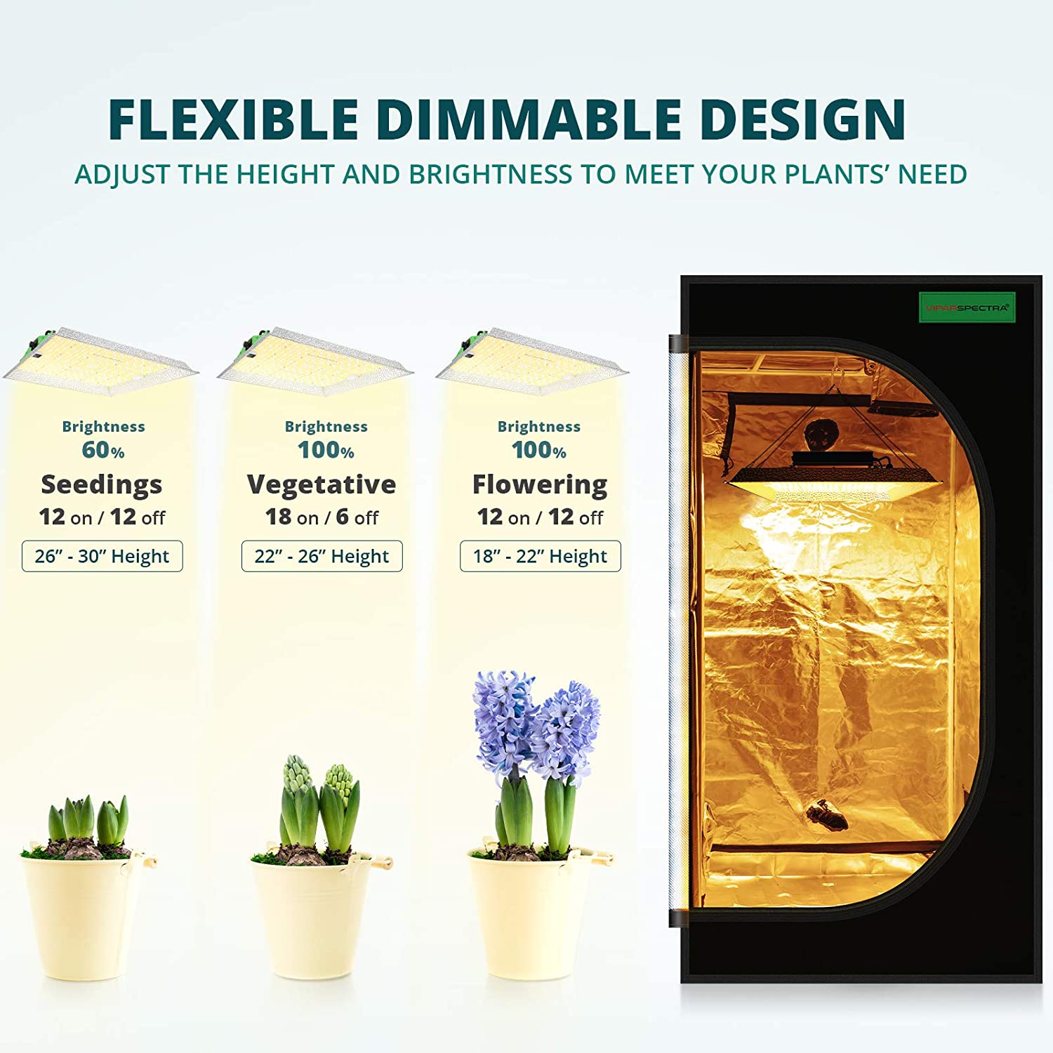 Dimmable Function & More FlexibleDimmbale function allows precise spectral control and suitable for each growing phase. The dimmer knob to change the brightness level of the whole light from 5-100% needed to obtain perfect growth performance. Dimmable knob is more flexible than switch. Especially for new growers who have no much planting experience. |