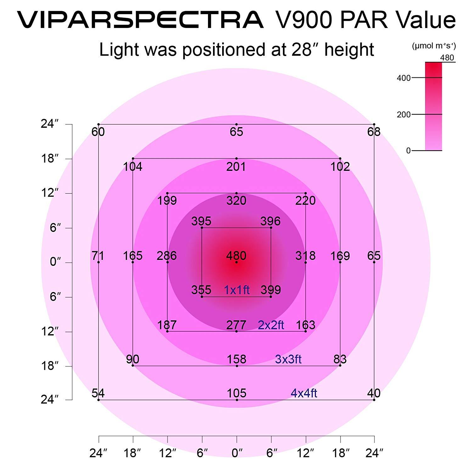 Scientifically Design: VIPARSPECTRA Reflector Series V900 LED Grow Light is scientifically engineered to keep the balance of the PAR Output and Coverage.
