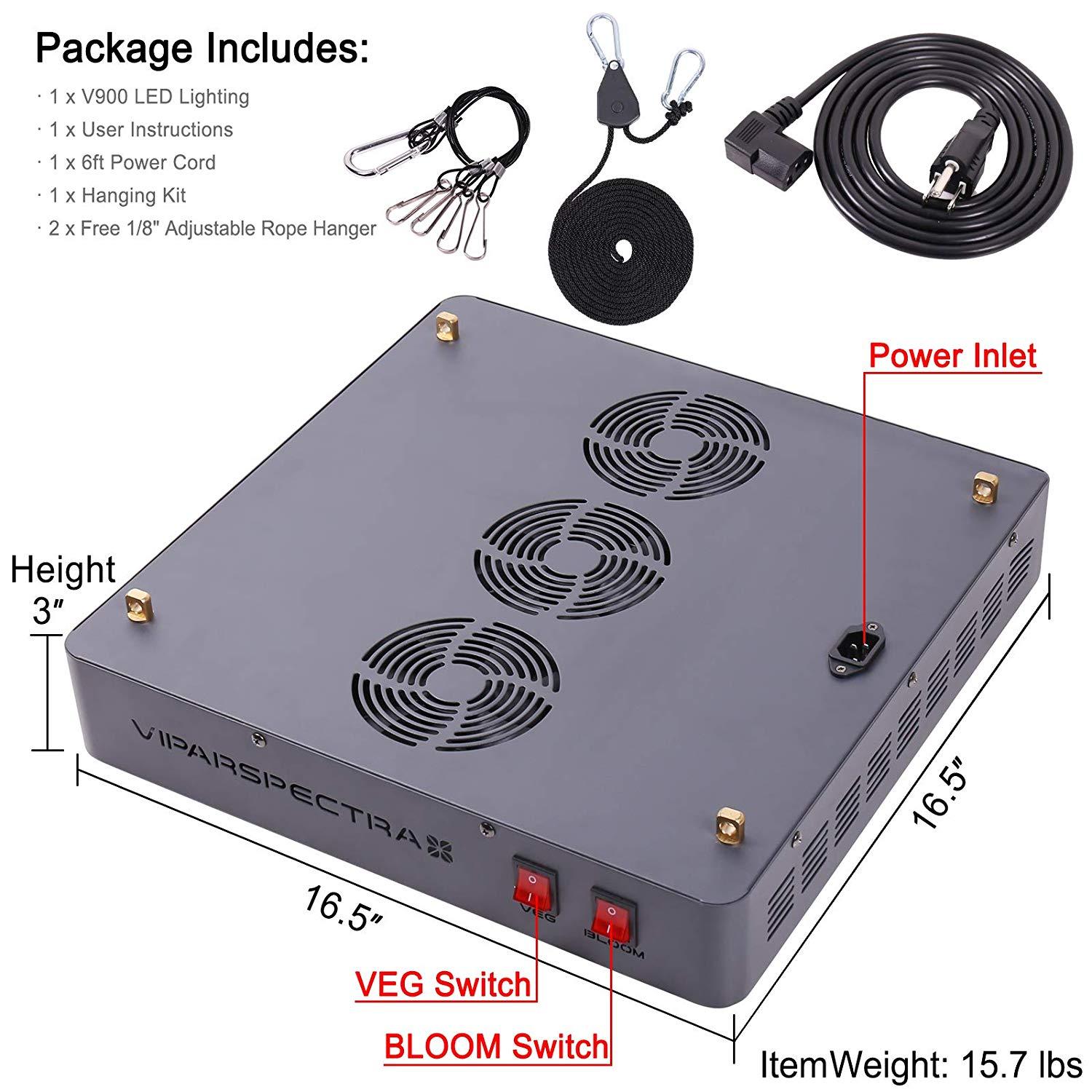 Optimal Spectrum: The secret to VIPARSPECTRA's success is optimal full spectrum lighting which provides plants in all stages from veg to flower with everything they need in the natural sunlight. This results in bigger buds and higher yield all while saving you on energy costs.