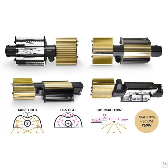 The Dimlux Xtreme Ballast gives you 7 separate dim options – considerably more than any other competing product – so you can precisely alter light output to match the changing demands of ever-developing plants. Two boost settings are available for generating up to 15% extra lumens than is advertised on the lamp, and the Soft Start and Soft Off features ensure you don’t get sudden surges of power when switching between “on” and “off” modes, protecting the product and upholding your safety. Utilizing superior electronic technology, the Xtreme Ballast operates very quietly and very efficiently, promising to save you money over time on you energy bills. It is reassuringly fireproof, employing a built-in processor to monitor the ballast-to-lamp connection and an LED display to inform you of the operating status, cutting the power in the event of a bad contact or short circuit. Output levels can be switched between the following settings: Soft Off, 330W, 410W, 490W, 560W, 630W, 690W, 760. With 7 settings, you have the flexibility to tailor your lighting to your plants demand based on environmental conditions in the grow area, ensuring that temperature stay well within range.