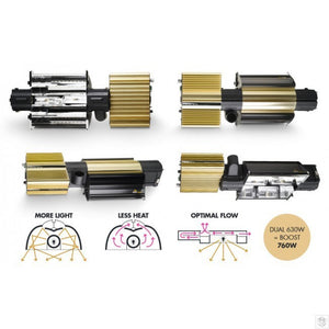 Like the other major lighting systems on the market, Dimlux Expert Series Complete CDM units consist of the ballast, reflector and lamp. However, closer inspection will reveal distinct differences – the most notable of which being that all three components have been integrated into one! Better still, the 630 Watt model somehow manages to incorporate two 315 Watt lamps for twice the power!