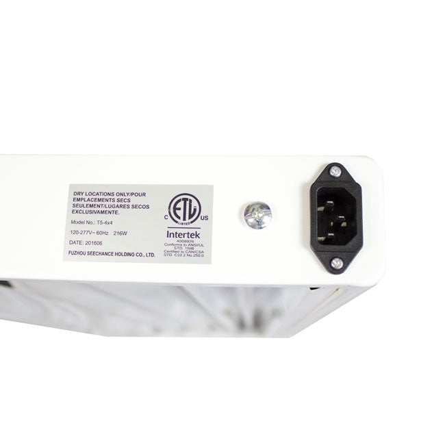Installed within the Prism T5 grow light fixture are two electronic ballasts controlled by separate switches that are easily accessible from the side of the grow light fixture. The separate switches allow you to turn on 50% or 100% of the lamps at one time. The Prism Lighting Science T5 fluorescent grow light fixture is perfect for the starting or professional grower and can be daisy-chained to matching fixtures for expansion. Use the supplied wire hangers to mount the light in any indoor location.