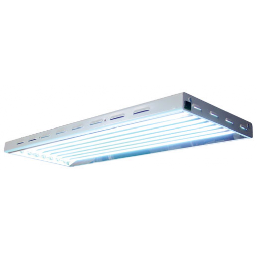 The newest Version 2 of Prism Lighting Science fluorescent T5 grow light fixture is ideal for those looking to use a compact, low heat T5 light with high efficiency. Comes ready with blue (6500k) bulbs. Each bulb is 54w, giving the unit a total of 432w of total light output. Runs voltages 120/208/240/277 (120V cord included) making it one of the most versatile T5 High Output (HO) grow lights. Detachable cords let you customize voltage needs and cord lengths. Comes with eight blue 6500K lamps installed. Is compatible with AgroLED T5 LED lamps. A full swap to AgroLED lamps drops wattage from 432w to 328w.