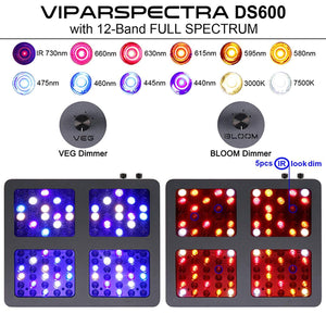 VIPARSPECTRA Dimmable Reflector DS600 600W LED Grow Light is scientifically engineered to keep the balance of the PAR Output and Coverage.