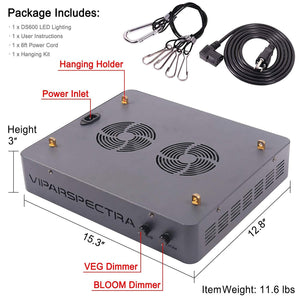 The secret to the VIPARSPECTRA LED success is the optimal full spectrum which provides plants Veg and Flower all stages with everything they desire in the natural sunlight. Dimmable feature allows precise spectral control.