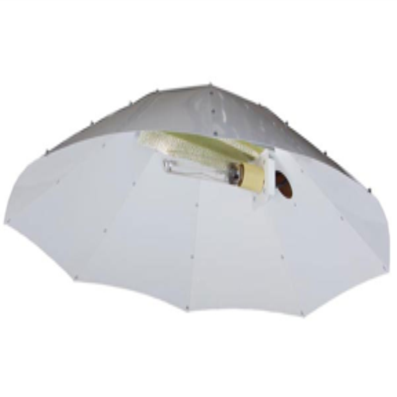 Winged Reflectors have open adjustable wings to help conform the light footprint to your grow area size, often made out of pliable aluminum. The glass in traditional air-cooled reflectors reduces light intensity by approximately 8%. Open wing reflectors allow you to get the most out of your light source to your canopy of plants. To cool your growing environment when using these lights, cool the environment not the fixture directly--use inline fans for exhaust and/or an air conditioning unit.