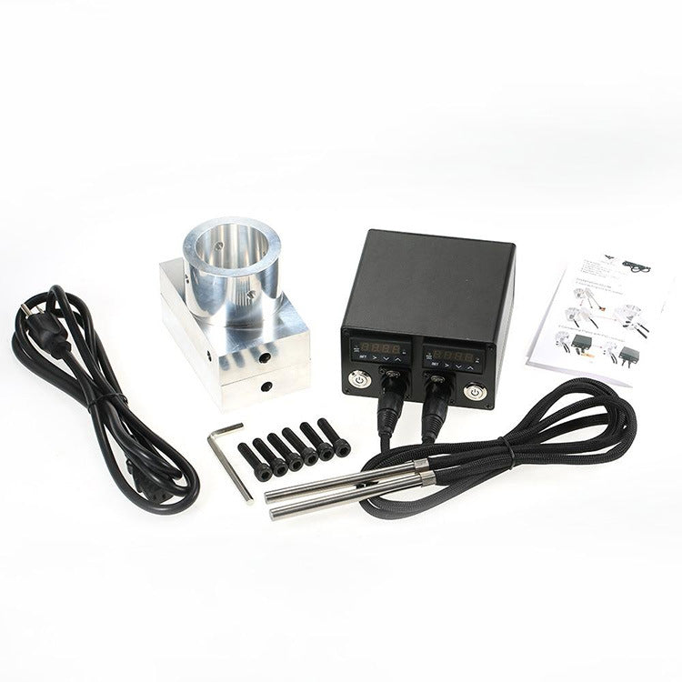 Comes with a full kit. 2 heating rods, 1 double PID controller, dual heaters, dual temperature sensors, 1 power cord, mounting screws and a wrench.