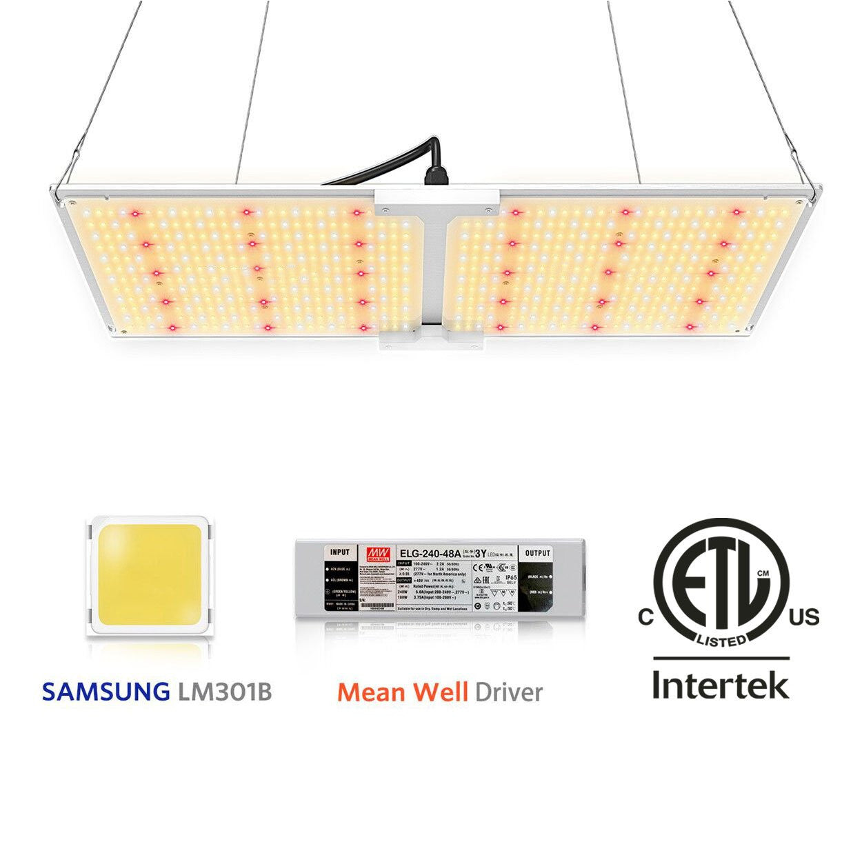 Grow Light: 1x220W LM301B LED Quantum Board, 1xHanging Kit, 1xPower Cord
