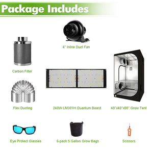 Grow Light: 1x240W LM301H LED Quantum Board, 1xHanging Kit, 1xPower Cord