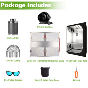 Grow Light: 1x480W LM301H Quantum Board, 1xHanging Kit, 1xPower Cord