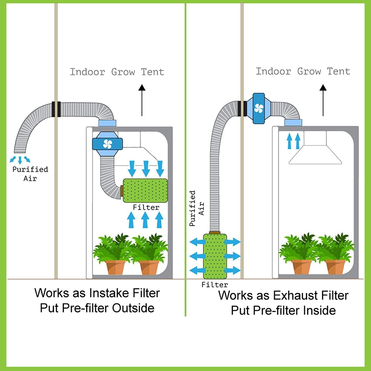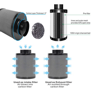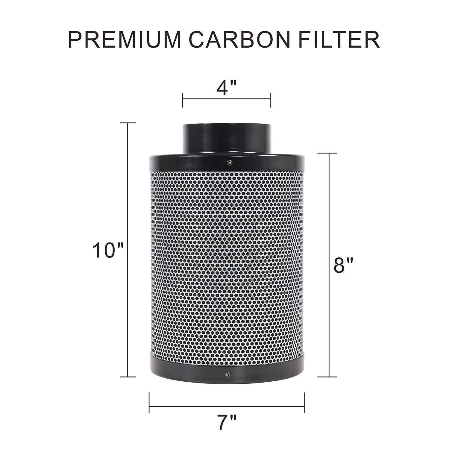 Carbon Filter: 10 inchH x7 inchD, 1.5 inches Carbon Layer, zinc-anodized steel housing mesh, use Coal Based activated carbon, machine packed carbon enables 100% filtered air flow.
