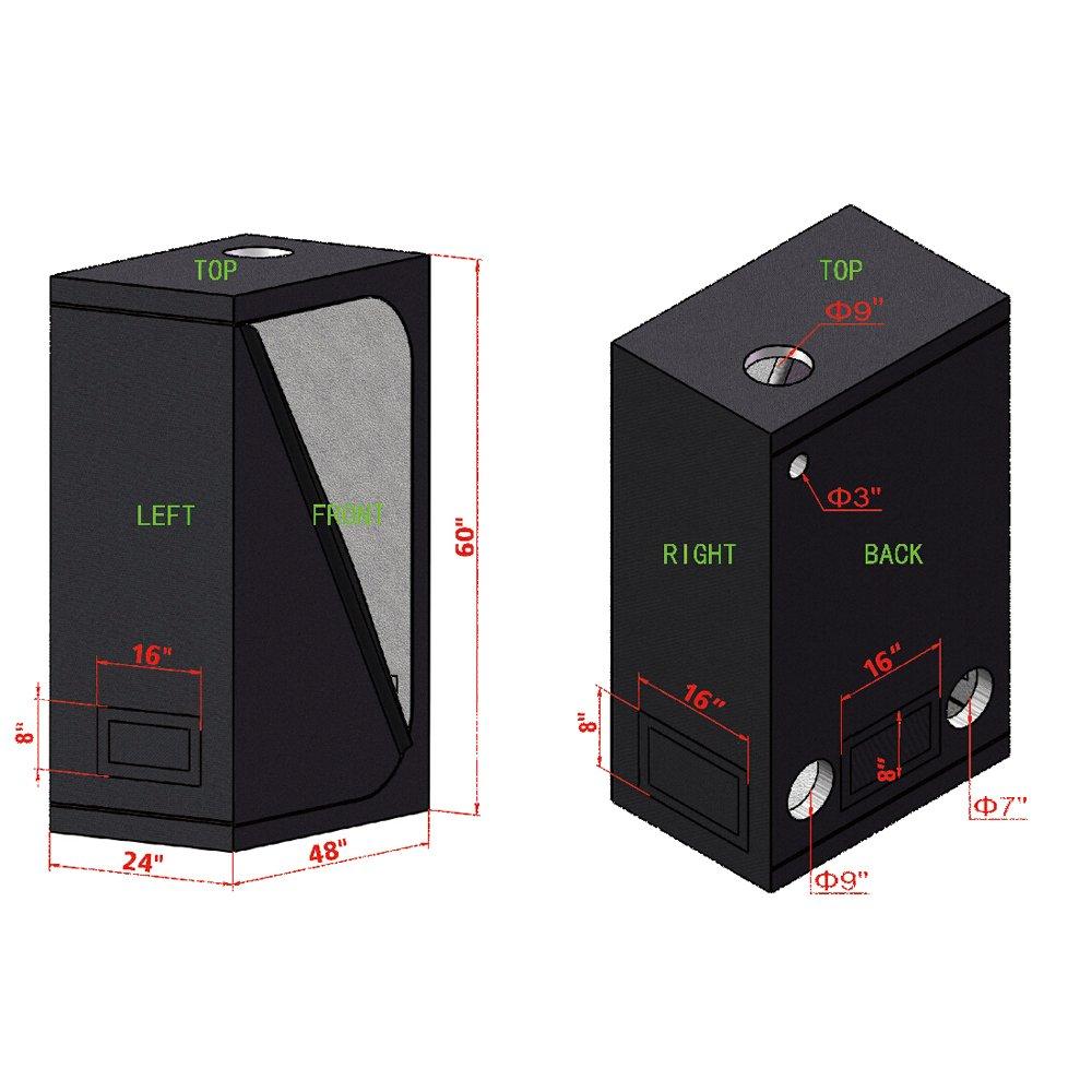 • Grow tent: The superior quality 600D canvas is tear proof and double stitched for blocks all light from escaping ; the canvas is reinforced by the metal poles to ensure the security and stability. High quality zipper can protect the tent from light leaking and ensure durability and long-lasting use. We've gone to great lengths to ensure our heavy-duty metal zipper is the best on the market