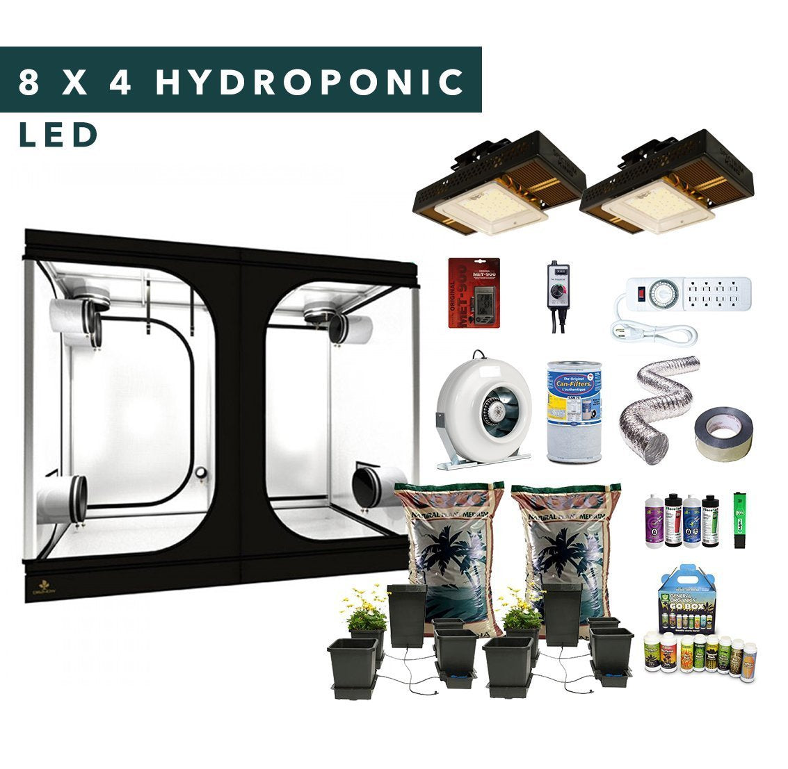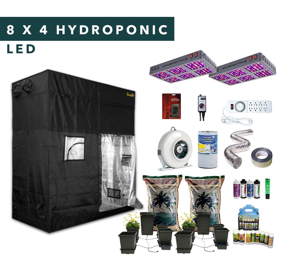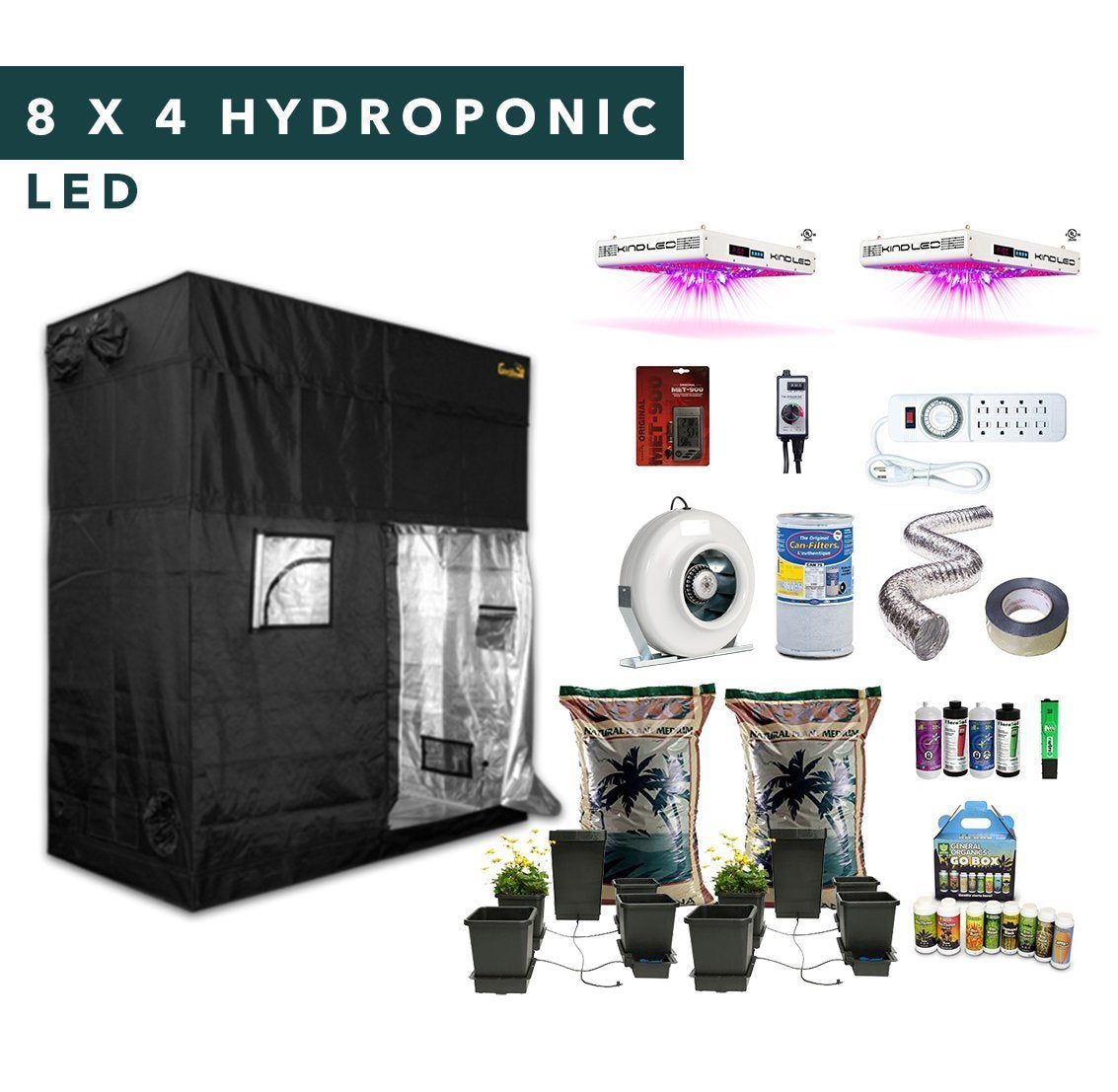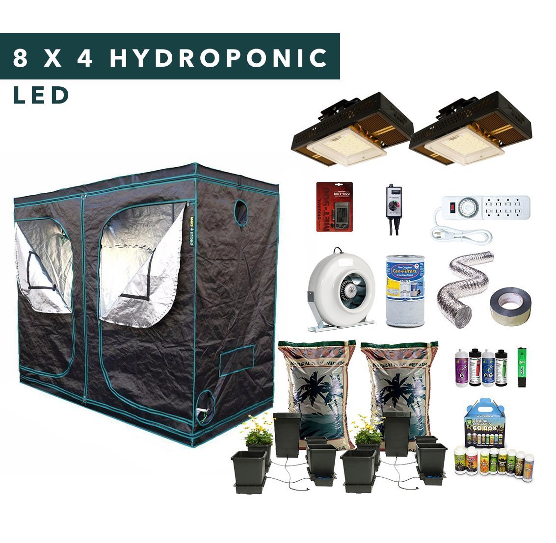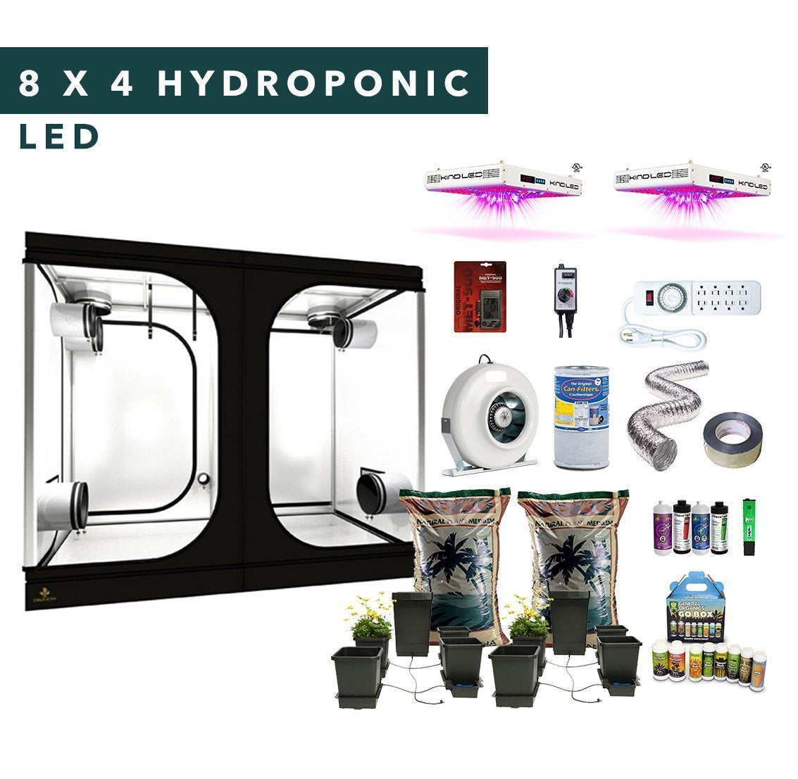 Complete 8 plants hydroponic full spectrum LED grow tent kits, it contains all the tools you needed to grow indoor plants.