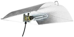 The " adjustable light spread" allows growers to create ideal lighting conditions across all stages of plant growth for increased vitality, health & yield. 95% reflective proprietary textured German aluminum. Twice the power & efficiency of most other reflectors. Increase the growing area under each lamp byup to 75%. increase yieldper lampup to 50%. sold in 17 countries across 4 Continents, Adjust-A-Wings are the " reflectors of choice" for many of the world's top growers! Medium dimensions: 22" x 24", 25", 26" or 27". Large dimensions: 28" x 36", 37", 38", 39" or 40". an additional socket assembly can be added to a Large adjust-a-wing. Allows operation of two 400W MH & HPS lamps or two 600W HPS lamps.