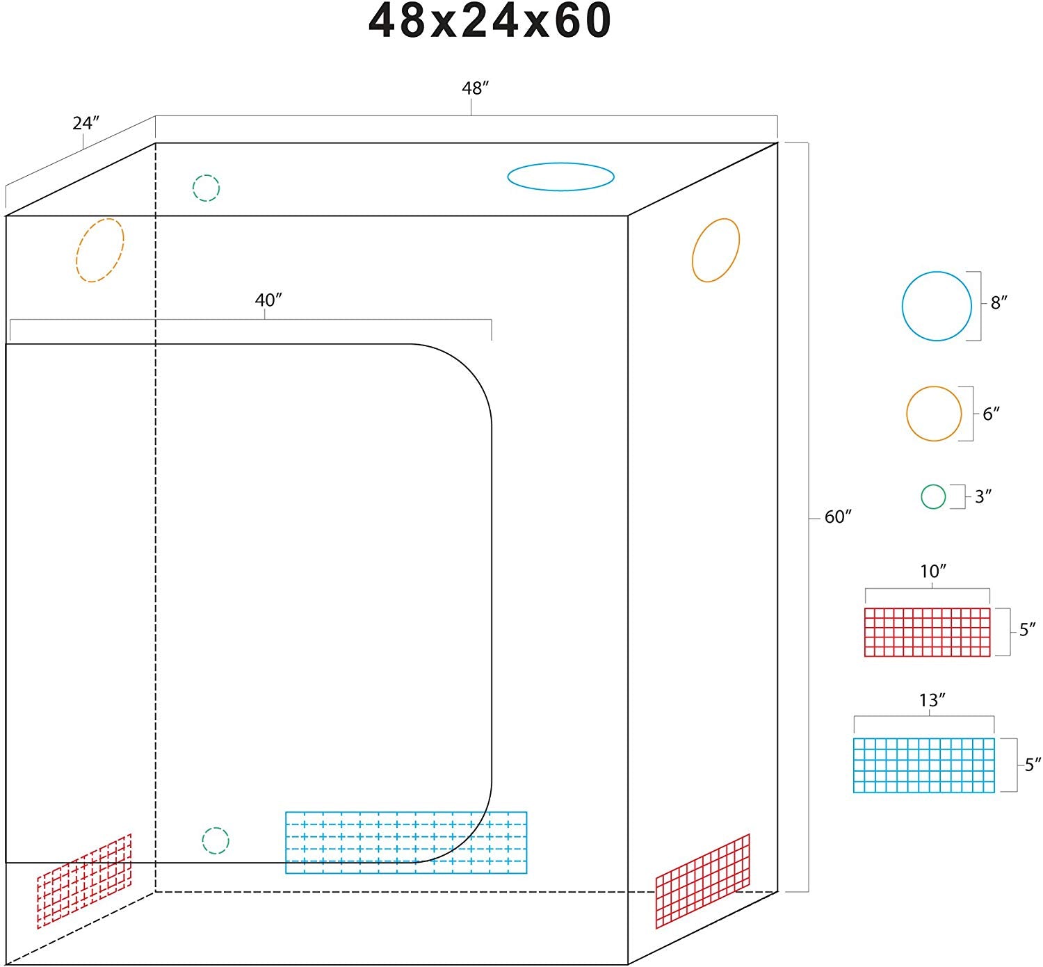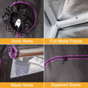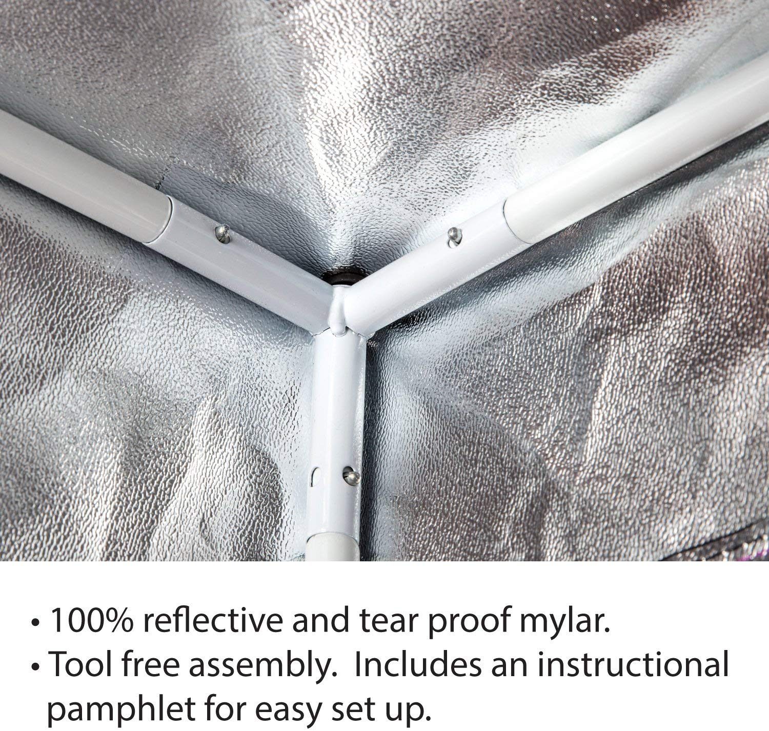 - Efficiency: Each tent is lined with 100% light-proof and tear-proof reflective Mylar film, which returns up to 92-97% of your grow light bulbs’ light back to your plants. Increase your grows without adding to your energy bill!