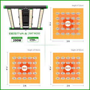 BESTVA BAT W200 provides a highly efficient full spectrum with a healthy red-to-blue ratio to drive photosynthesis. Light energy between 500–599nm, previously thought wasted, penetrates deeper into the plant canopy promoting photomorphogenic responses. High colour rendering “white” light aids to rapidly identify potential threats to your crop and provides superior working conditions and safety for personnel. Ideal for both flowering and vegetative production.