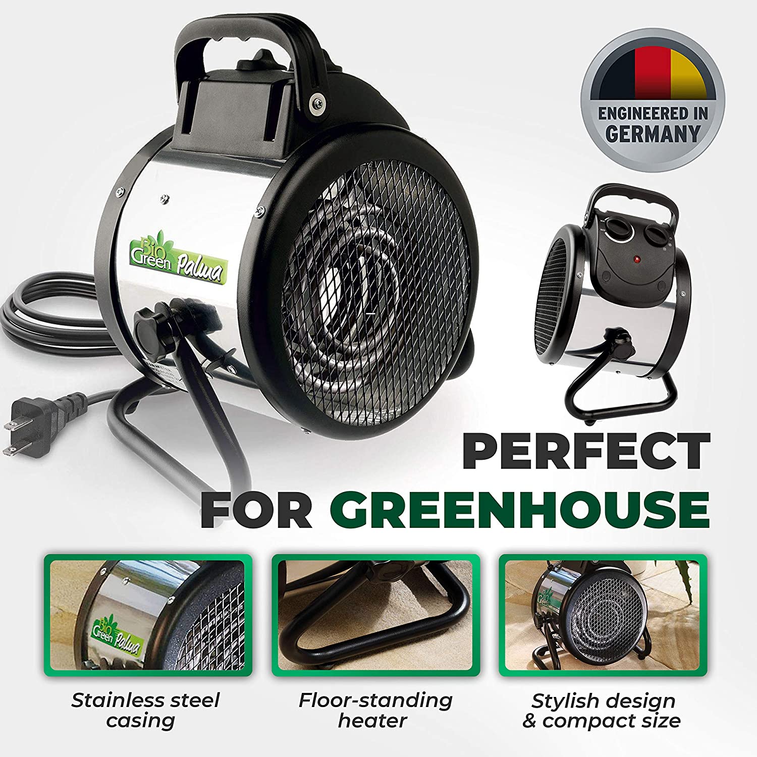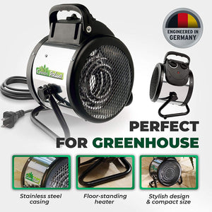 • Floor-standing greenhouse heater, high airciculation fan agains mold formation on plants