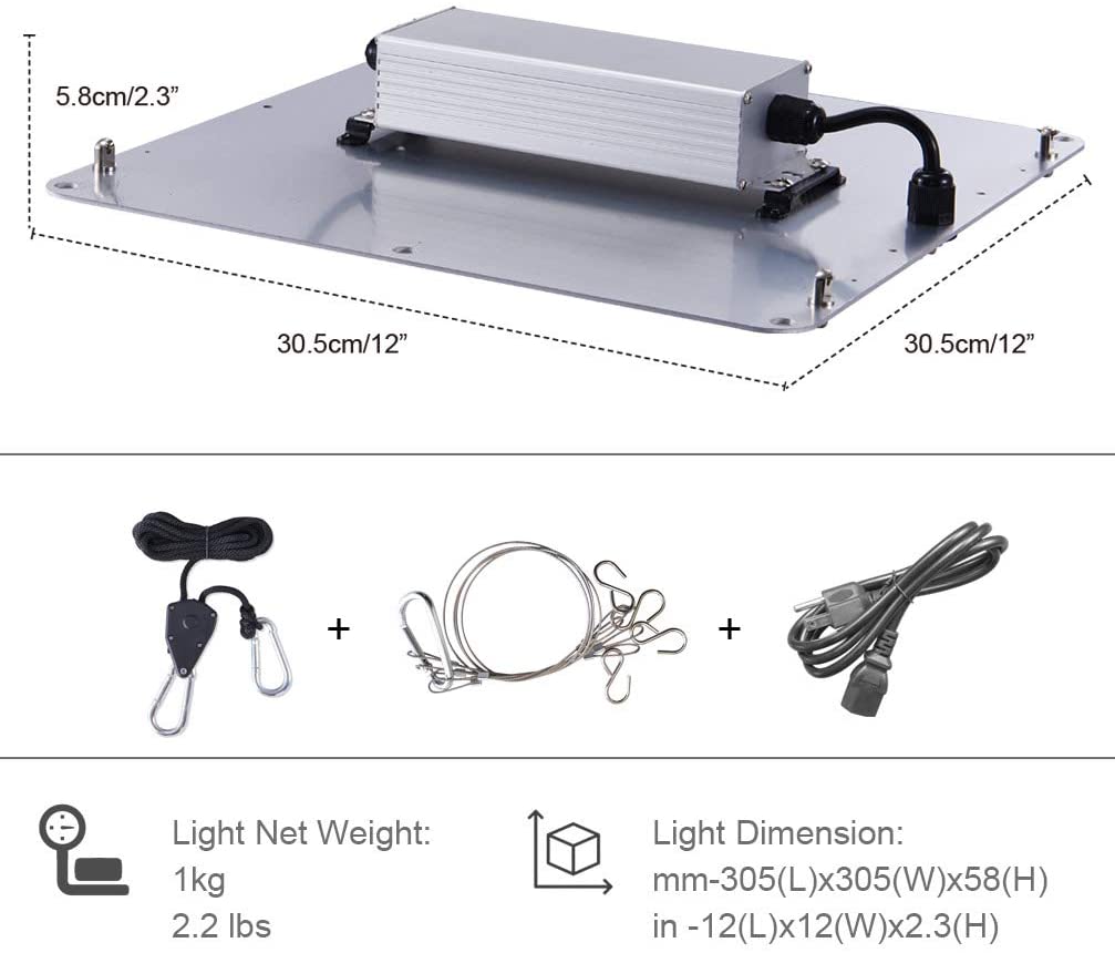 LEDs: 288 pcs ( 3500K white LEDs, Wideband Full RED LEDs, Purple LEDs, UV LEDs)
