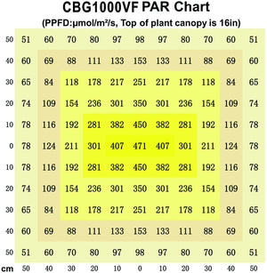 400 μmol/m²/s (Vegetative: h=16in A=2X2ft)