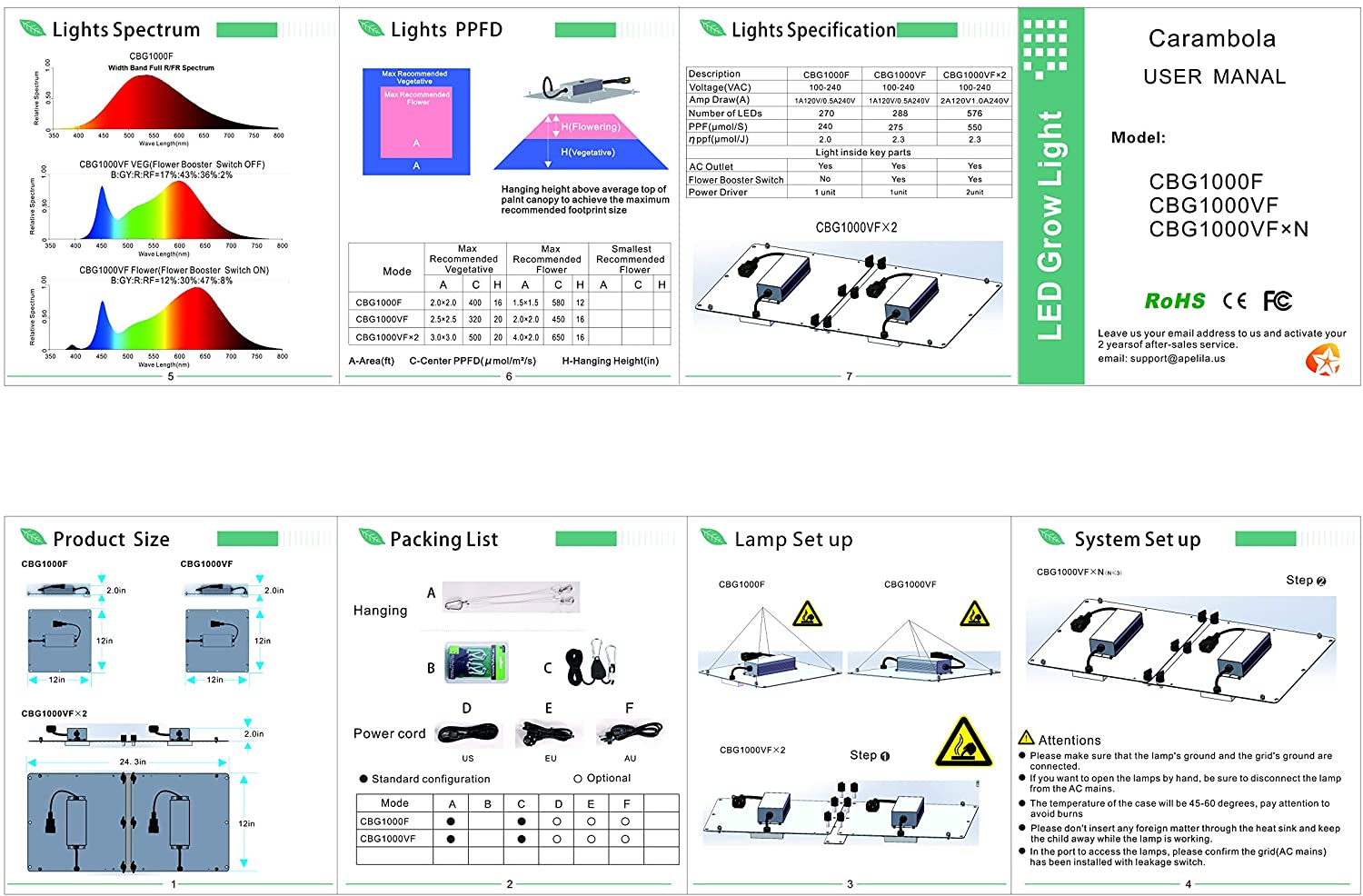 Light Spectrum: 380nm~800nm full spectrum including 450nm/660nm/730nm